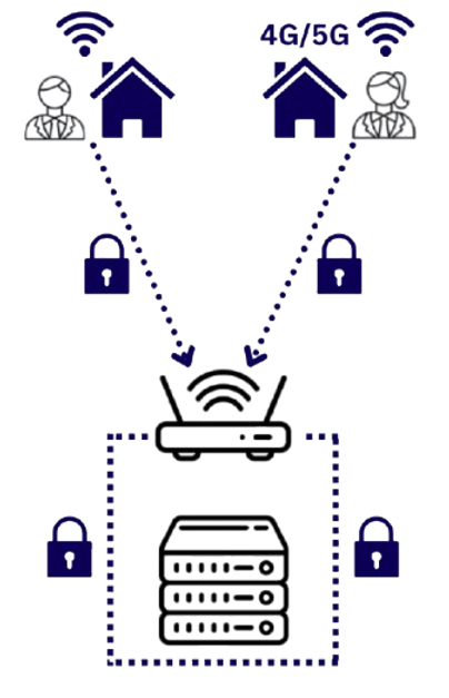 ​AgloVPN creates a secure, encrypted “tunnel” between a remote user’s device and your office network. Once connected, staff can access files, applications, printers, and servers just as if they were physically in the office. The encryption ensures that all data transmitted is protected from interception, while authentication protocols verify user identity to prevent unauthorized access. This allows teams to work from anywhere — home, client sites, or on the move — without compromising security or performance.